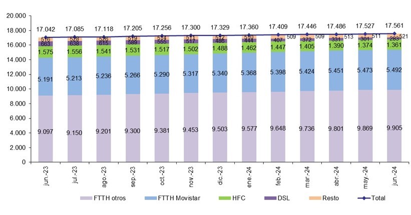 En cuanto a las líneas móviles, el mes sumó 175.210 líneas en junio, hasta los 59,82 millones, un 2,3 % más que hace un año.