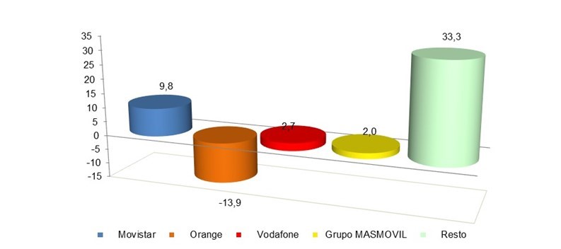 Los OMV registraron un saldo neto de portabilidad positivo, mientras que Movistar, Vodafone, Orange y Grupo MasMovil presentaron saldos negativos.